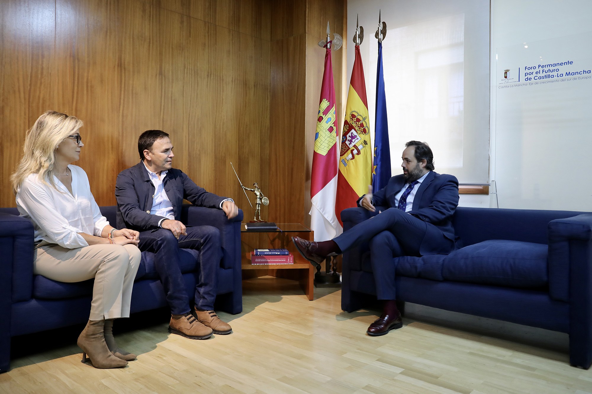El presidente de la Comunidad de Usuarios de Aguas Subterráneas (CUAS) Mancha Occidental II, José Joaquín Gómez Alarcón, se ha reunido este lunes en las Cortes regionales, en Toledo, con el presidente del Partido Popular de Castilla-La Mancha, Paco Núñez, en el marco del ‘Foro Permanente por el Futuro de Castilla-La Mancha’, una serie de encuentros que está celebrando el PP con representantes de entidades y colectivos de la región.