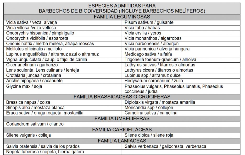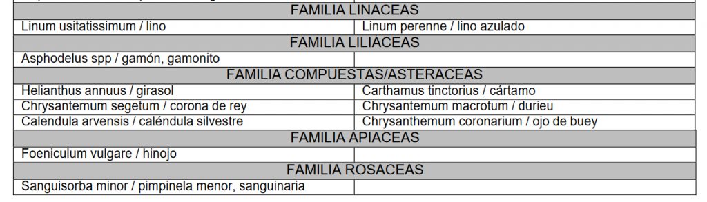 Además, Se ha corregido el nombre de Onobrychis viciifolia / esparceta, y Helianthus annuus / girasol, y se ha incluido en el listado la especie Lathyrus cicera / titarros/almortas.