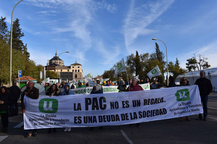 Unión de Uniones de Castilla-La Mancha, junto a la Plataforma en Defensa de la Agricultura y Ganadería Ecológica en Castilla-La Mancha, realizaban una concentración este fin de semana en Toledo que reunió a cerca de 200 agricultores y ganaderos de la región como crítica a la gestión del Gobierno de Emiliano García-Page con los fondos del Programa de Desarrollo Rural de la PAC.