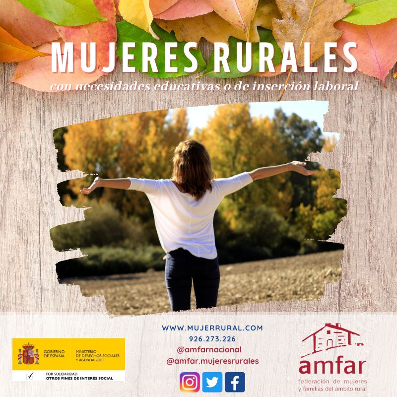 AMFAR va a poner en marcha 12 cursos que podrán ser presenciales u online dependiendo de la demanda de las beneficiarias. Tendrán una duración de 30 horas lectivas y forman parte del Programa “Mujeres Rurales con Necesidades Educativas o de Inserción Laboral” que AMFAR desarrolla en el ámbito nacional.