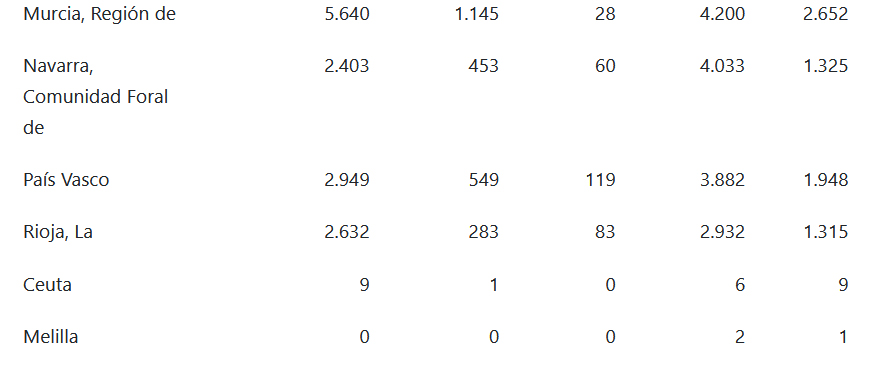 Reuniendo todas las categorías de transmisiones (compraventa, permuta, donación, herencia, otros), el número de fincas rústicas transmitidas fue de 437.382, destacando la cifra de las 79.731 de Castilla y León y las 59.487 en Andalucía.