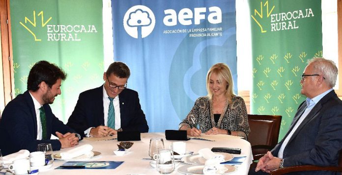 Eurocaja Rural y la Asociación de la Empresa Familiar de la provincia de Alicante (AEFA) se han aliado para contribuir al fortalecimiento de la empresa familiar en la provincia y favorecer a su vez la formación de los empresarios familiares con el fin de fomentar el crecimiento, continuidad y desarrollo de estos modelos empresariales. La alianza se ha sellado con la firma, por primera vez, de un convenio de colaboración entre ambas entidades.