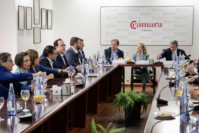 La también ministra de Asuntos Económicos y Transformación Digital se ha referido a la sequía, a preguntas de los periodistas, minutos antes de mantener este mediodía una reunión de trabajo con representantes de la Cámara de Comercio de Cáceres.