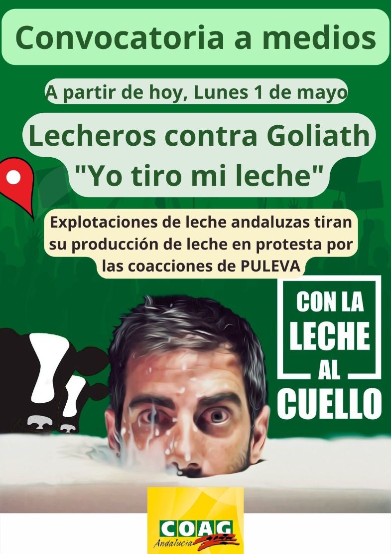 Los ganaderos andaluces se han visto forzados a tirar la producción del día porque Puleva no les ha recogido la leche, presionándoles así para que cedan a la imposición de bajar 9 céntimos el pago en origen por litro de leche, lo que según ha estimado COAG Andalucía, supondría unas pérdidas por ganadero de 20.000€/mes, “lo que sin duda es inasumible para los ganaderos, endeudados de manera importante para mantener la exigencia de calidad y ser competitivos”.