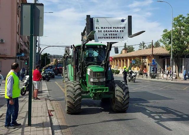 Y en Granada, más de cien vehículos recorrieron las calles para reclamar a la Confederación Hidrográfica del Guadalquivir (CHG) el riego de la Vega con aguas regeneradas.