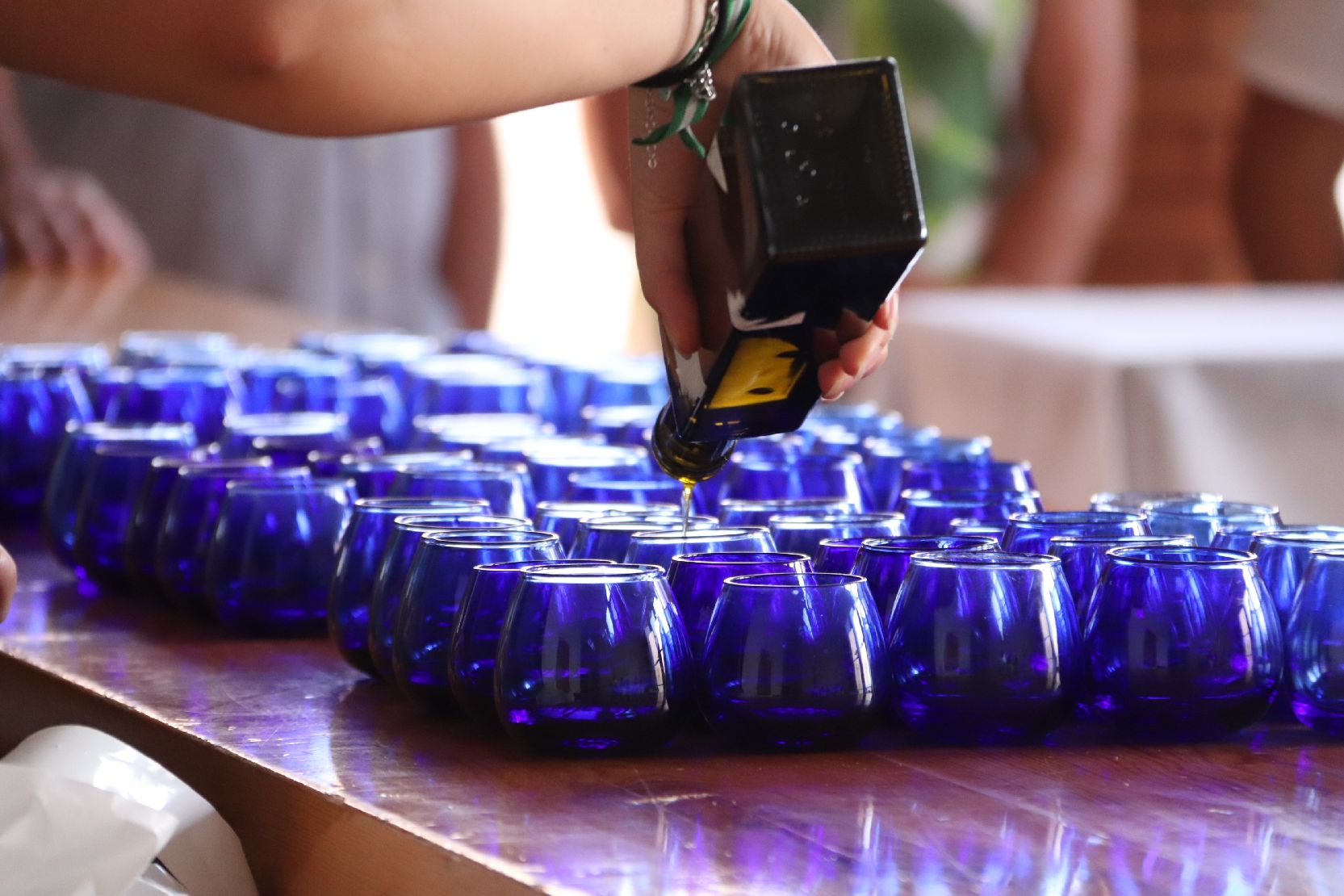 La cata se realizó en tres fases para detectar sus tres atributos positivos: el frutado en nariz, el amargo en boca y el picante en garganta. Para ello, hizo falta utilizar unos vasitos especiales de cata de color azul que incluían un vidrio de reloj “para concentrar todos los aromas que con el calor se desprenden”. Y es que “la temperatura óptima a la que hay que realizar una cata de aceite es de 28 grados”, ha subrayado Maeso.