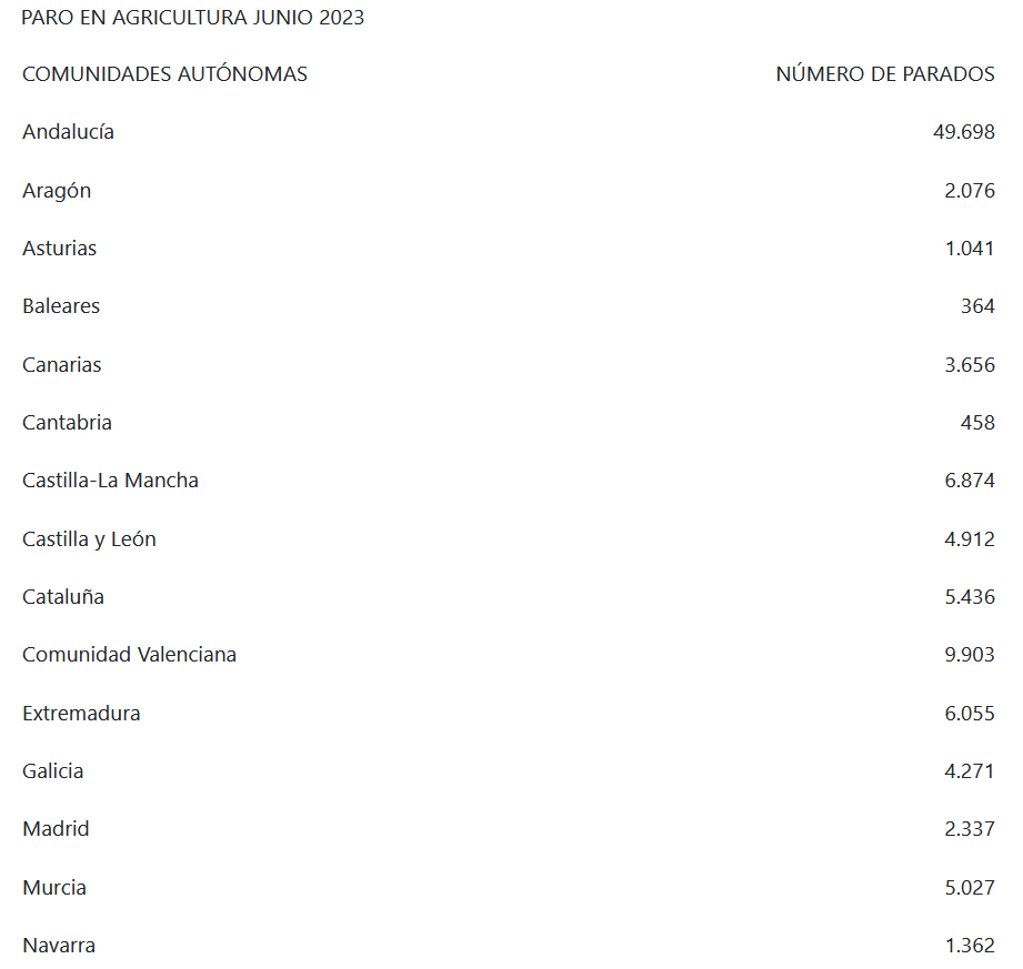 En junio pasado se contabilizaron 133.721 contratos en la agricultura, lo que supone una caída del 18,08 % respecto a mayo y una bajada del 21,47 % respecto a junio de 2022.
