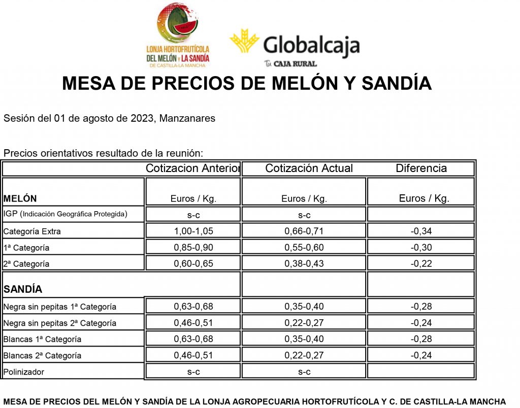 Lonja de Melón y Sandía de Castilla-La Mancha. 1-Agosto-2023