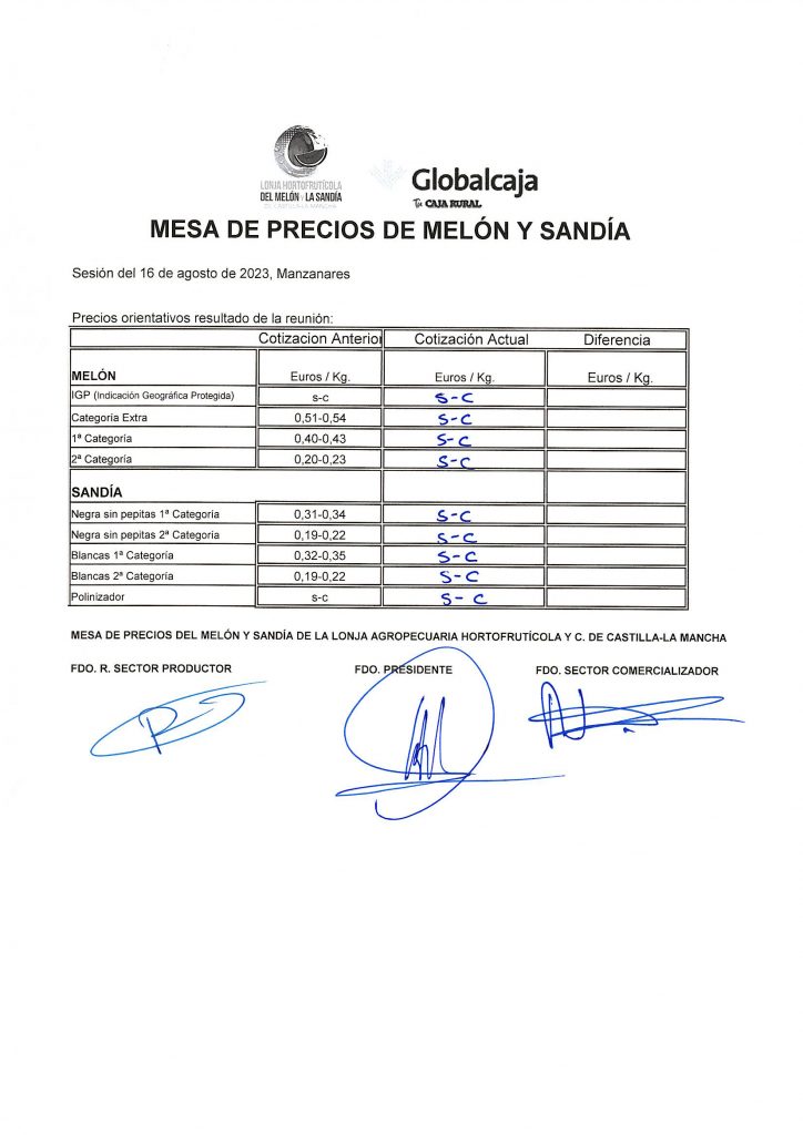 Lonja de Melón y Sandía de Castilla-La Mancha. 16-Agosto-2023