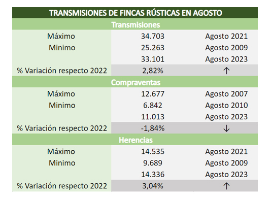 A pesar de la caída, las operaciones sobre fincas rústicas registradas en agosto superaron en un 13,8% a los niveles previos a la pandemia.