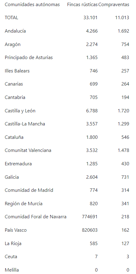 En agosto se contabilizaron 33.101 transmisiones de fincas rústicas, entre las que, además de las compraventas, hay 14.336 herencias, 1.259 donaciones, 256 permutas y 6.237 operaciones de otro tipo.