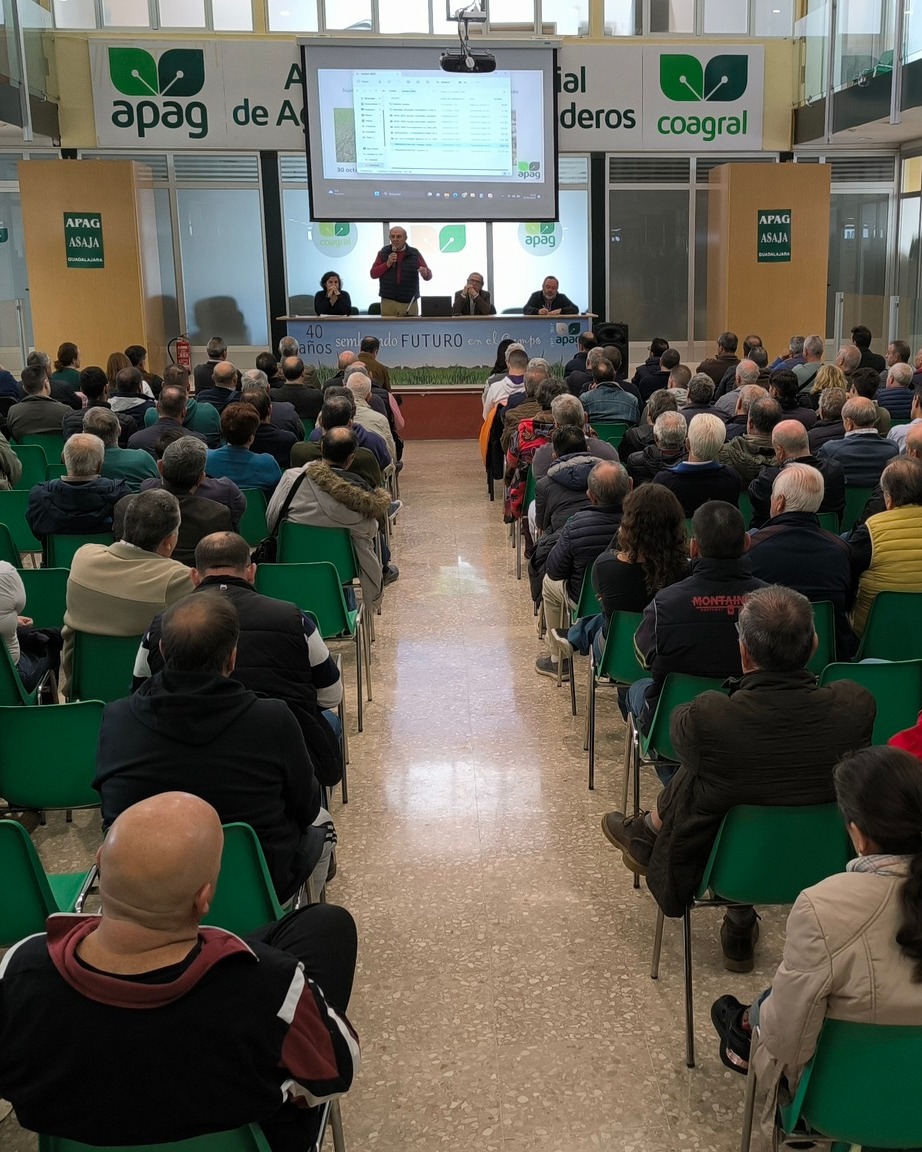La lonja de APAG (Asociación Provincial de Agricultores y Ganaderos de Guadalajara) se ha llenado de agricultores y ganaderos este martes que han respondido a la convocatoria de las citas informativas sobre la Política Agraria Común (PAC), de cara a poder organizar las siembras y no perder ayudas.