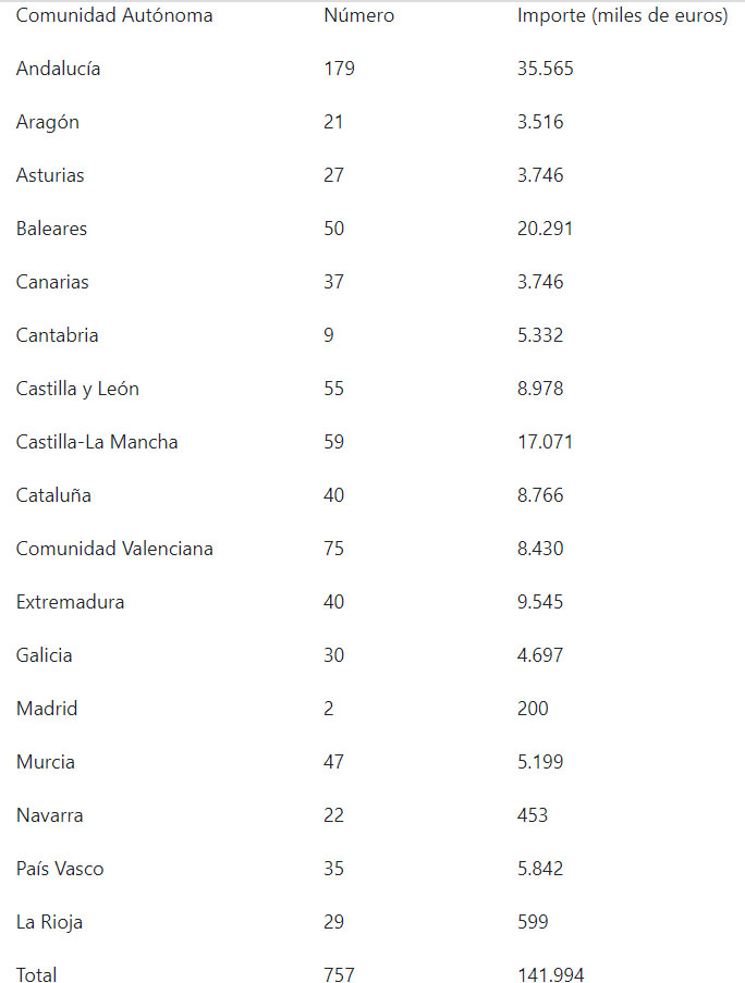 Los bancos prestaron 92,6 millones de euros para formalizar 461 fincas en septiembre, mientras que las 296 restantes fueron a cargo de otras entidades que han prestado 49,3 millones de euros.