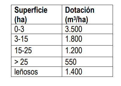 Las captaciones en el perímetro de la zona meridional tendrán una dotación máxima de 1.524 m3 /ha, si el caudal fluyente de Villanueva de la Fuente es superior a 130 l/s, salvo en el periodo 15 de junio a 31 de agosto, en el que queda prohibida la extracción y utilización de agua para riego.