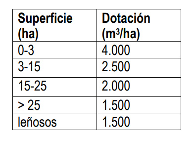 En consecuencia, la CHG propone ajustar las extracciones mediante la aplicación de unas dotaciones de 1400 m³/ha para cultivos leñosos y 2100 m³/ha para cultivos herbáceos.