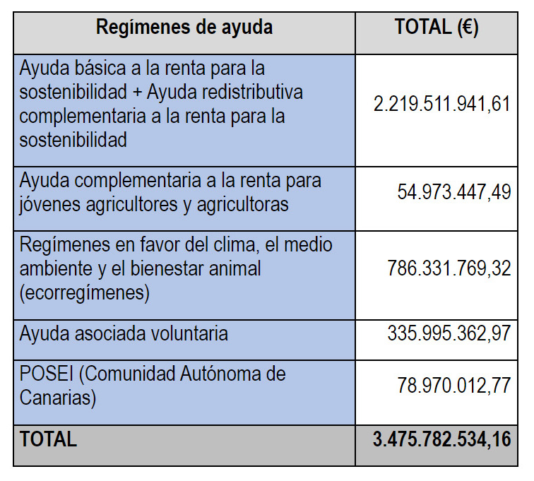 A partir del 1 de diciembre se autorizó el abono de hasta el 90 % de la ayuda básica a la renta y sus pagos complementarios. También desde el 1 de diciembre se pudo transferir hasta el 90 % del pago de los ecorregímenes y los regímenes de ayudas asociadas a la producción sostenible de proteínas de origen vegetal, arroz, remolacha azucarera, tomate para transformación, frutos secos en áreas con riesgo de desertificación, producción tradicional de uva pasa y olivar con dificultades específicas y alto valor medioambiental, así como de ayudas asociadas a la ganadería, excepto las ayudas al engorde de terneros.