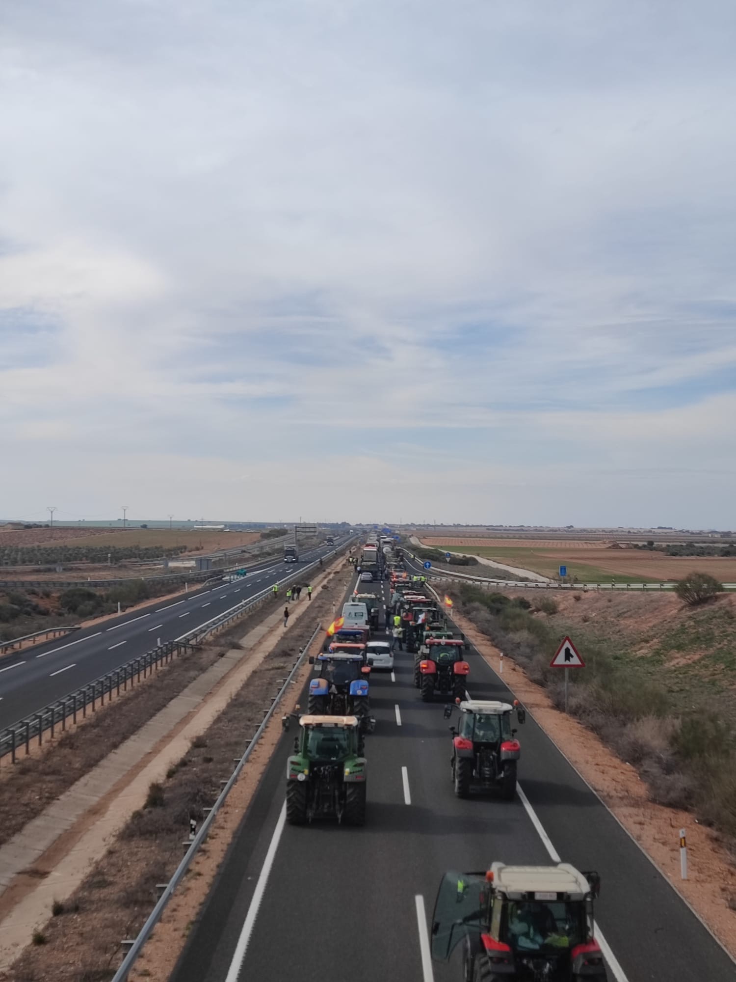 En Castilla-La Mancha, los tractores han llegado al centro de Toledo y Ciudad Real, han cortado la autovía A-3 (Madrid-Valencia) en varios tramos, y han provocado cortes de tráfico en la AP-36 (Ocaña-La Roda), la N-301 a su paso por Corral de Almaguer (Toledo) y retenciones en la N-430, a su paso por el término municipal de Villarrobledo (Albacete).