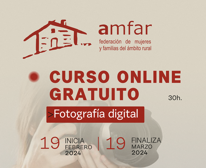 Además de este curso de fotografía digital, AMFAR tiene abierto el plazo de matrícula para otros tres cursos de formación online sobre: “Igualdad de Oportunidades” que se impartirá del 18 de marzo al 22 de abril; otro sobre “Agricultura Ecológica” que se celebrará del 1 de abril al 2 de mayo y un tercero dedicado al “Mantenimiento y mejora de las actividades diarias de Personas Dependientes”, que se realizará del 20 de abril al 27 de mayo. Además, actualmente AMFAR está formando a 20 mujeres como Monitoras-Guías de la Naturaleza” que finalizará el próximo 29 de febrero.
