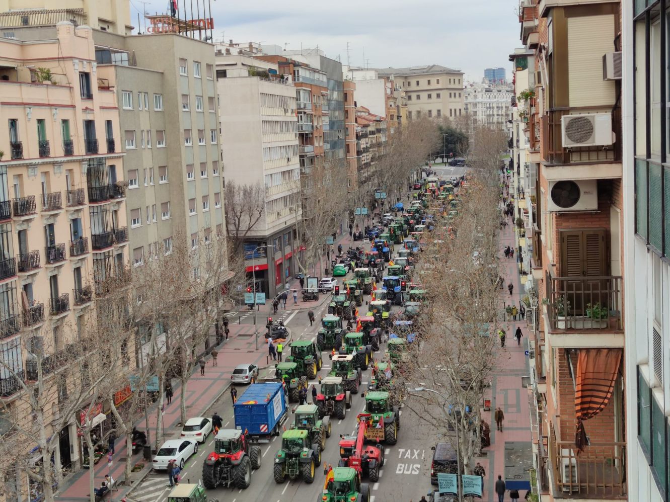 Así, a la espera a pie firme, han estado los agricultores hasta pasado el mediodía cuando los primeros 70 tractores han hecho su llegada a la puerta de Alcalá, procedentes de Cuenca, mientras otra columna se acercaba desde el suroeste y decenas de agricultores encaraban el paseo de las Delicias, hasta llegar frente a la sede del Ministerio de Agricultura, Pesca y Alimentación.