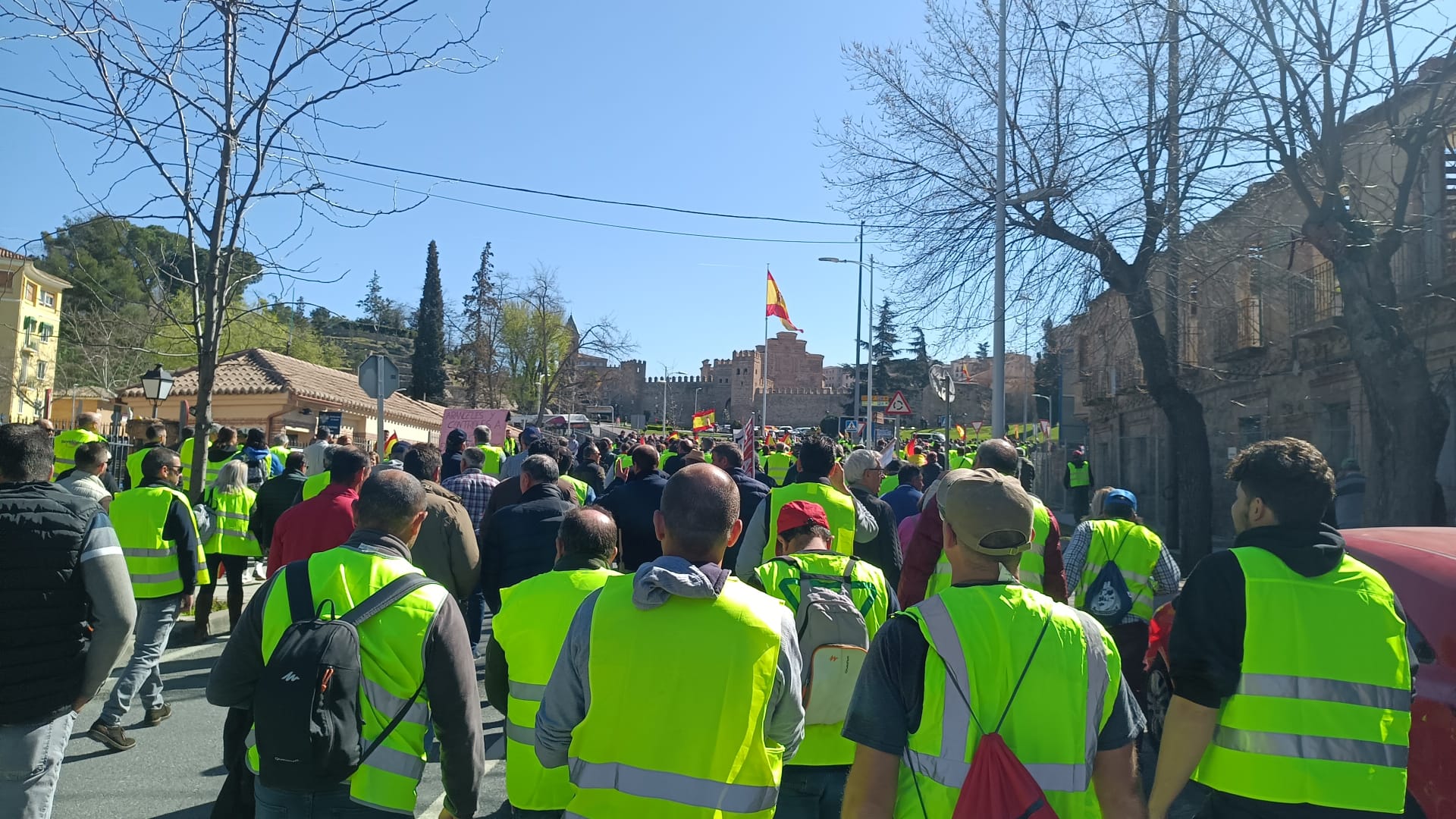 Desde allí, y tras alguna discusión entre los organizadores y algunos de los participantes, que no entendían por qué no se les ha dejado que los tractores circulen por el casco histórico de Toledo, se ha iniciado una manifestación que se ha dirigido primero a la Consejería de Agricultura, y después al Palacio de Fuensalida, sede de la Presidencia del Gobierno de Castilla-La Mancha, donde también se ha entregado el mismo escrito reivindicativo.