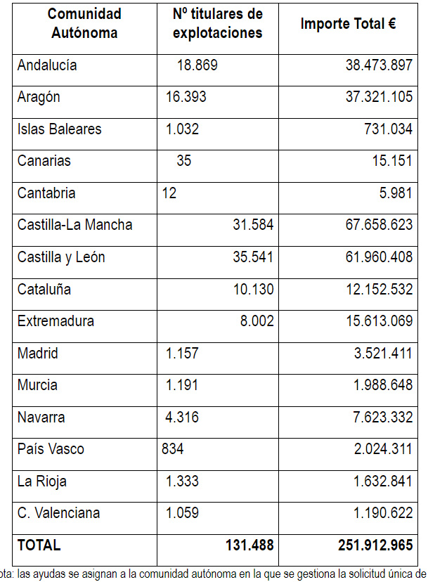 Los importes unitarios definitivos establecidos por el FEGA son: