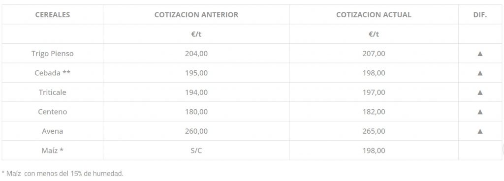 En el resto de los cereales, subida de entre 2 y 5 euros tonelada, prácticamente es la primera subida de calado que experimentan los cereales desde hace un año, exceptuando la avena, que siempre ha ido a contracorriente del resto de cotizaciones.
