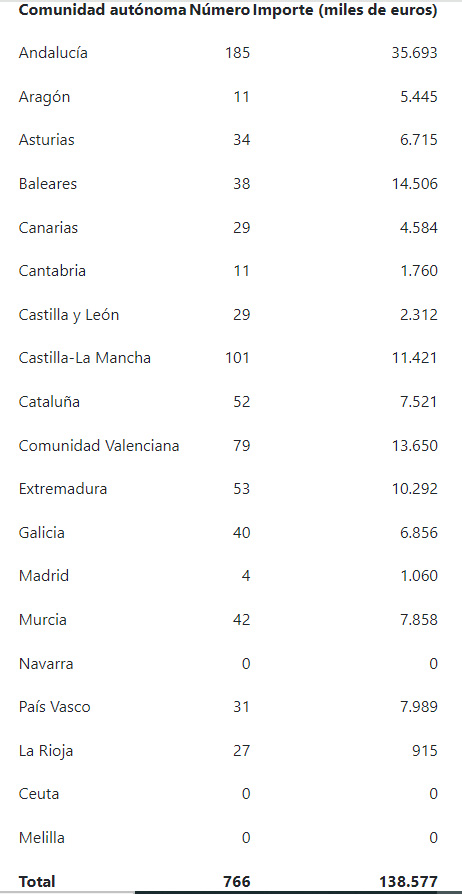 Distribución de hipotecas de fincas rústicas en 2023