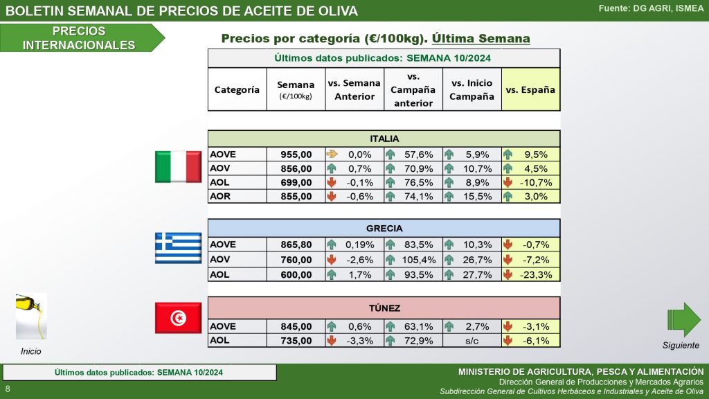Boletín de mercado del aceite de oliva del Ministerio de Agricultura