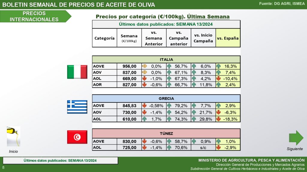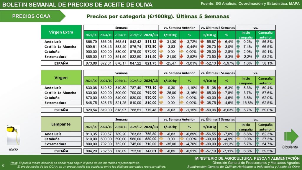 Boletín de Mercado del Aceite de Oliva del Ministerio de Agricultura
