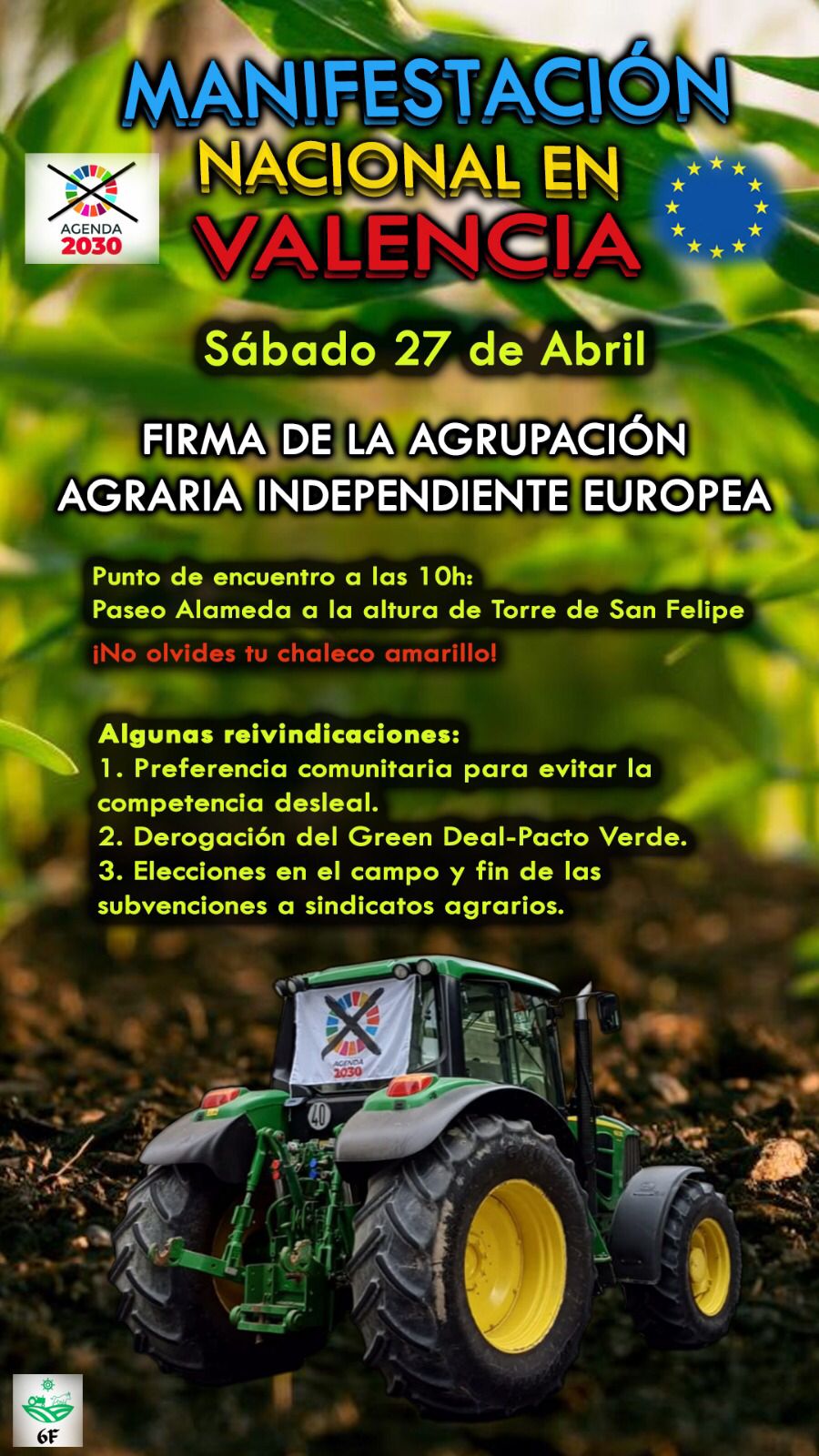 Agricultores y ganaderos presentarán el sábado 27 de abril en Valencia la Agrupación Agraria Independiente Europea. Será a partir de las 10.00 horas en el paseo de la Alameda.