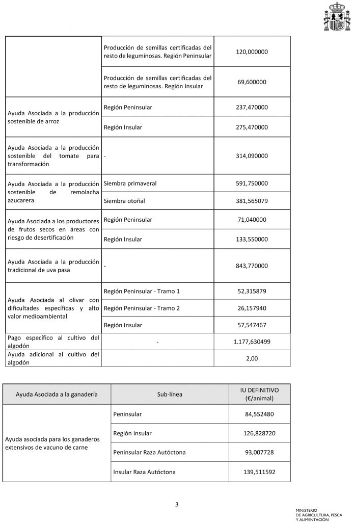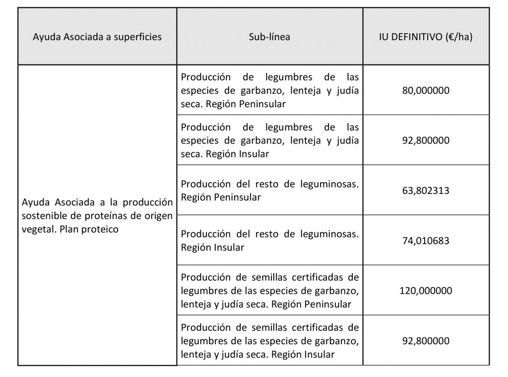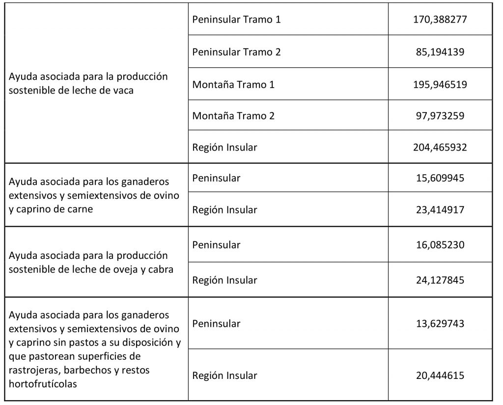 Importes unitarios definitivos de las ayudas asociadas