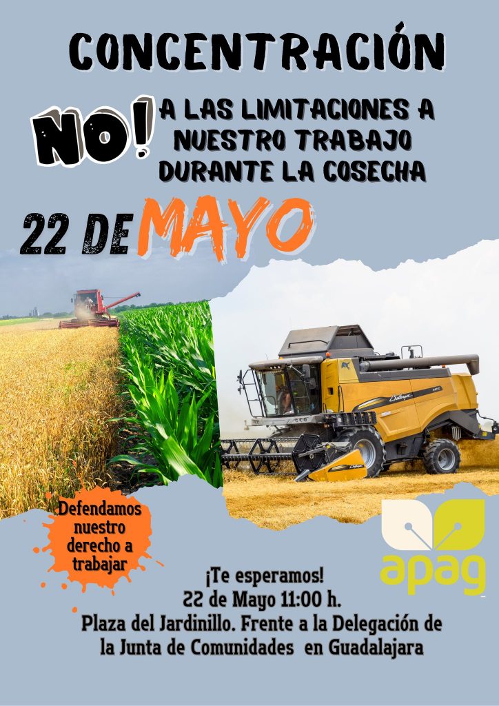 En Guadalajara, la Asociación Provincial de Agricultores y Ganaderos-ASAJA Guadalajara ha convocado una concentración para el miércoles 22 de mayo en la capital, en protesta contra las limitaciones por la prevención de incendios que dificultan la campaña de siega.