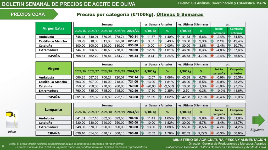 Boletín de mercado del aceite de oliva del Ministerio de Agricultura