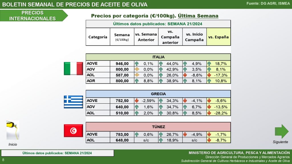 Boletín de mercado del aceite de oliva del Ministerio de Agricultura