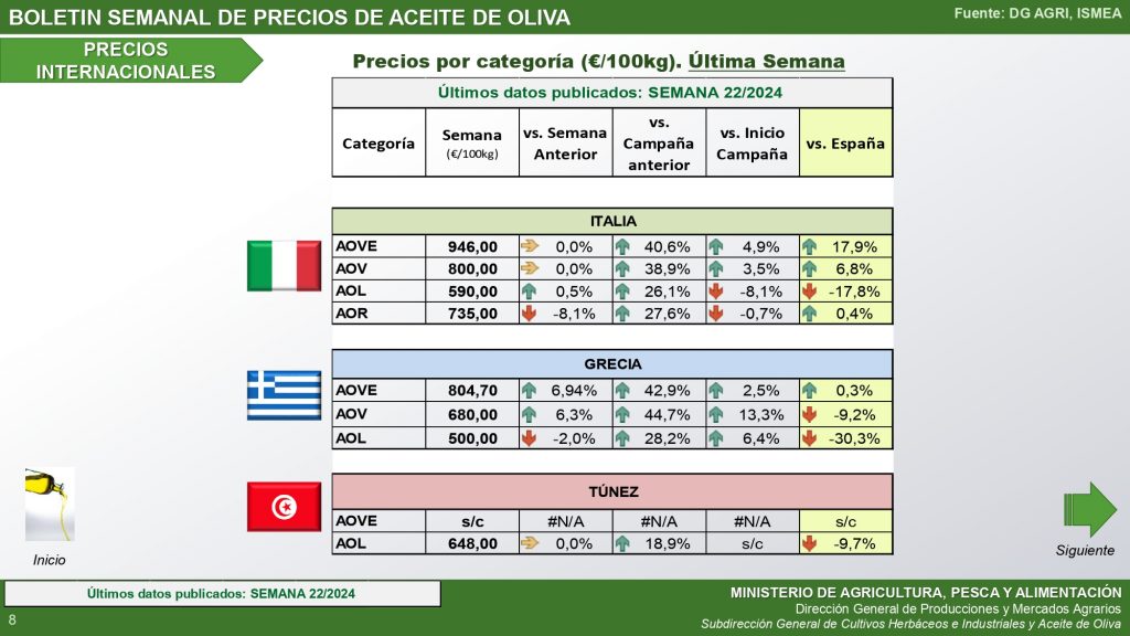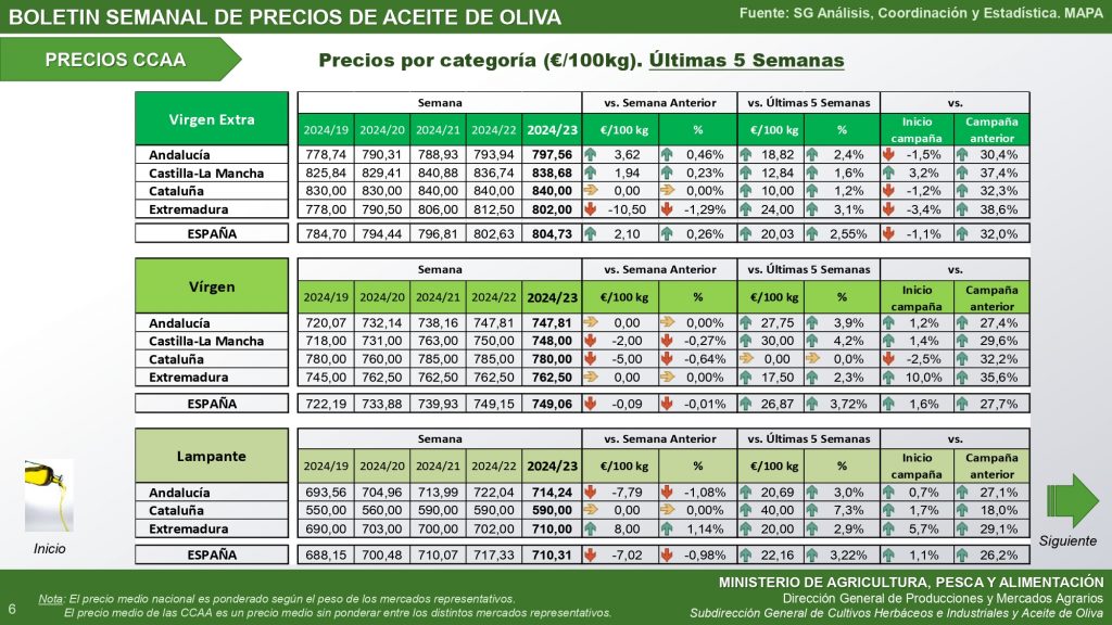 Boletín de mercado del aceite de oliva del Ministerio de Agricultura