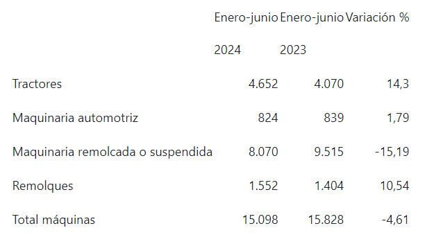 En este periodo, en el campo español se han vendido un total de 15.098 máquinas agrarias, lo que representa un descenso del 4,61 % con respecto a los seis primeros meses de 2023.