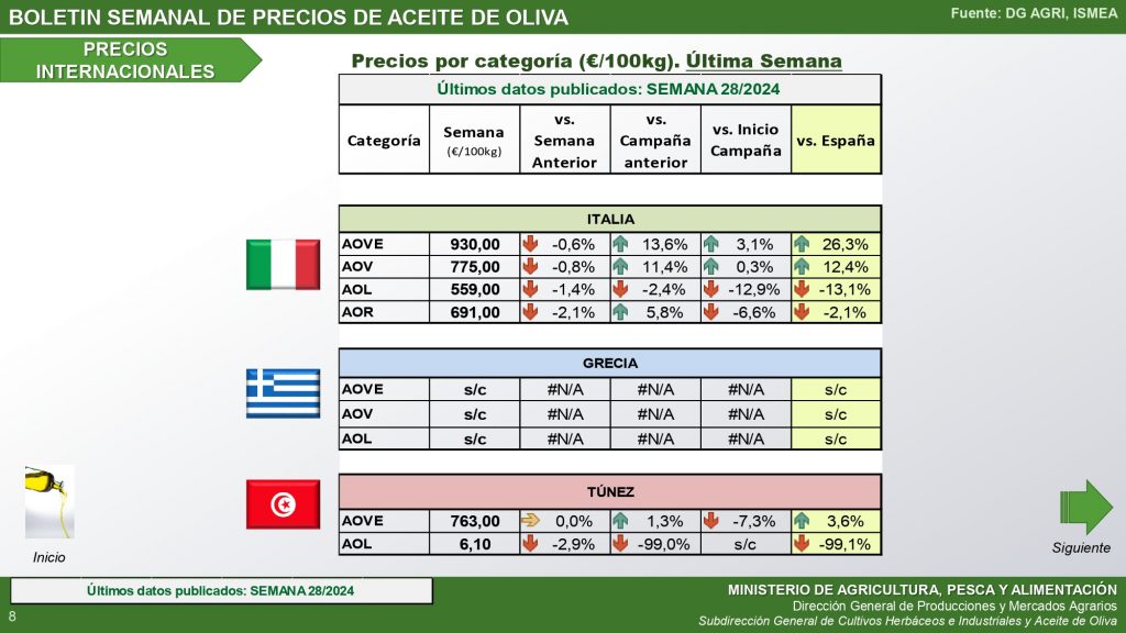 Boletín de mercado del aceite de oliva del Ministerio de Agricultura