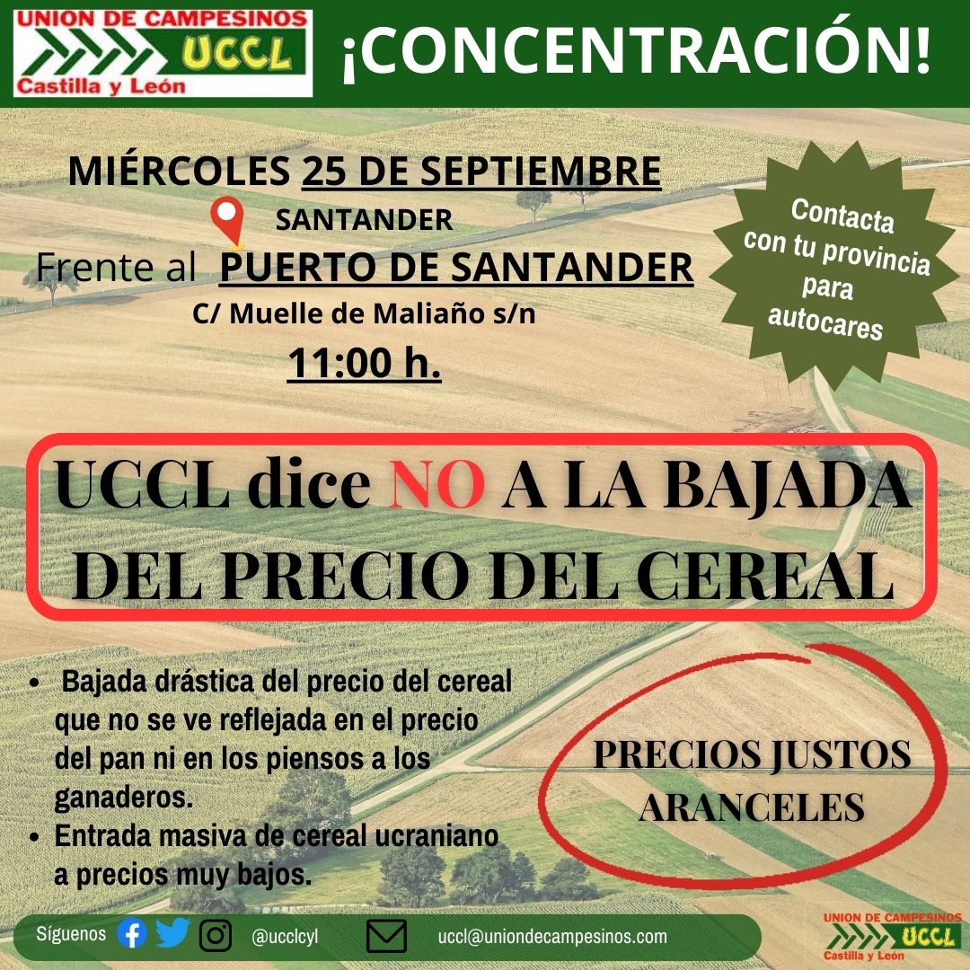 La Unión de Campesinos de Castilla y León (UCCL) denuncia el descenso de los precios en origen de los cereales, que puede llegar a truncar las expectativas de los cerealistas de Castilla y León y transformar la cosecha de una campaña medianamente buena, en una campaña agrícola nefasta.