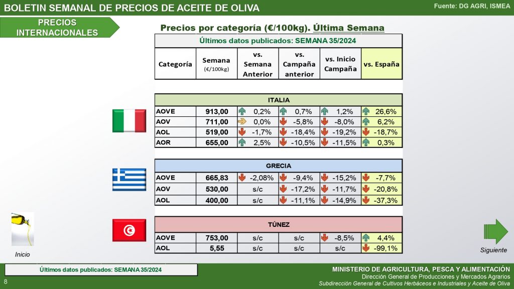 Boletín de mercado del aceite de oliva del Ministerio de Agricultura