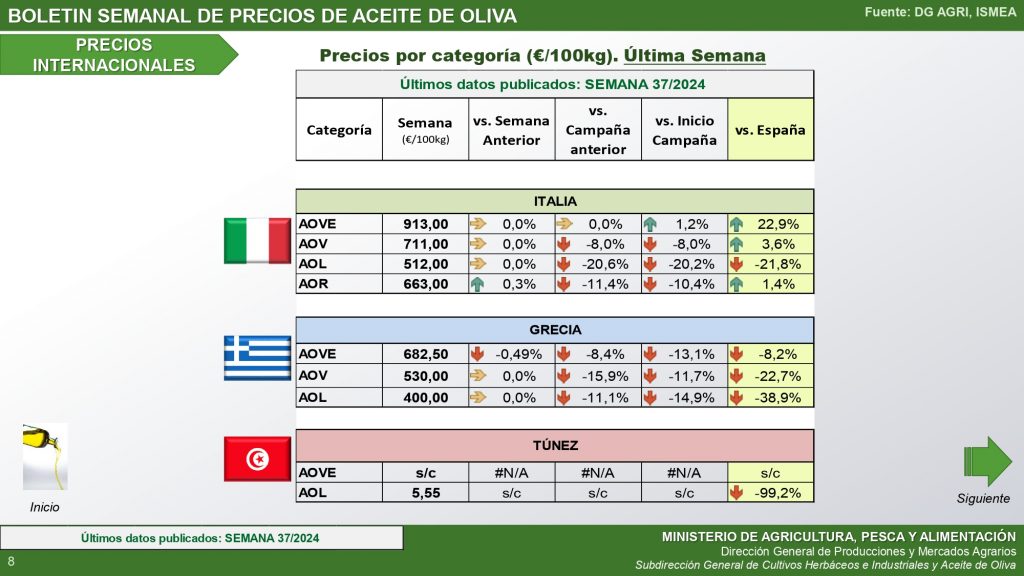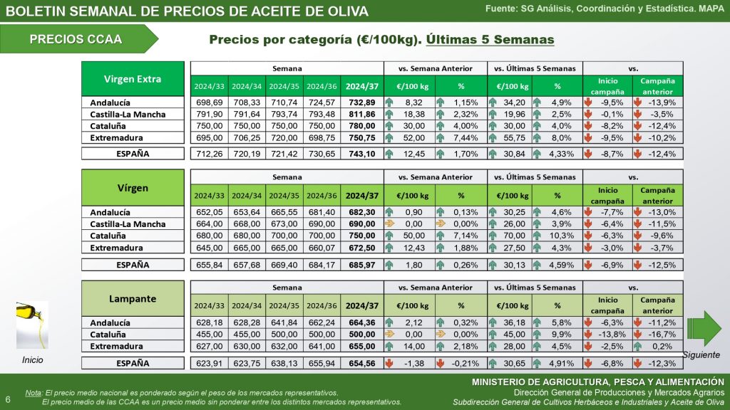 Boletín de mercado del aceite de oliva del Ministerio de Agricultura