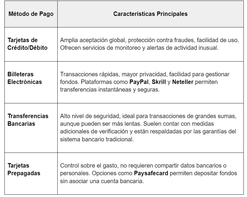 Diversidad y fiabilidad en los métodos de pago