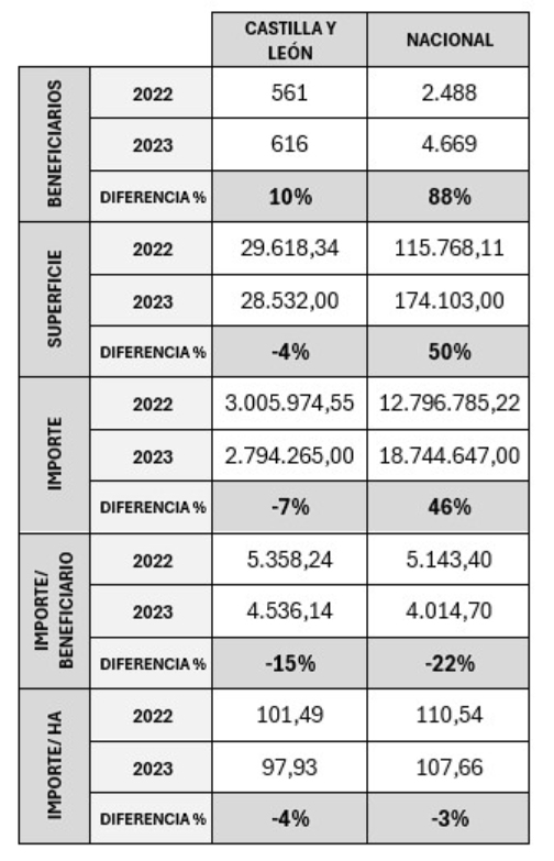 Sin embargo, pese a esta subida general de los importes, Castilla y León recibirá menos dinero y en una superficie menor (211.709,55 euros y 1.086 hectáreas menos que en el año 2022), siendo una de las comunidades más perjudicadas.