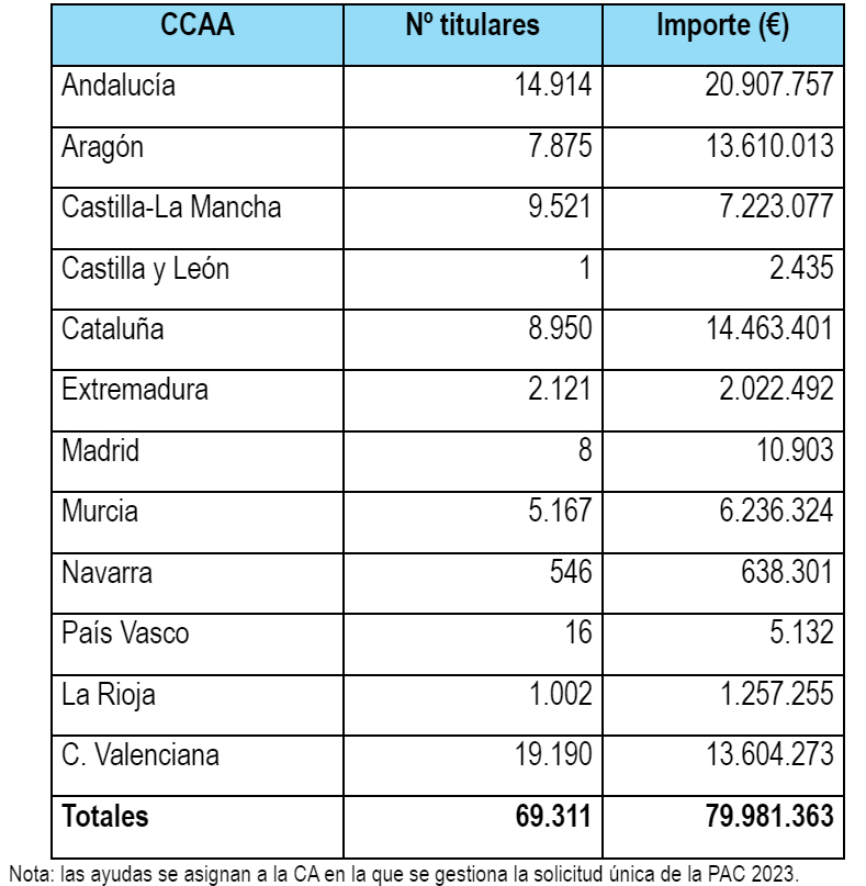 Con este nuevo pago, el importe de esta ayuda extraordinaria se eleva ya a cerca de 80 millones de euros, de los que se han beneficiado a 69.311 agricultores, lo que supone el 98,6 % del presupuesto total de esta línea.
