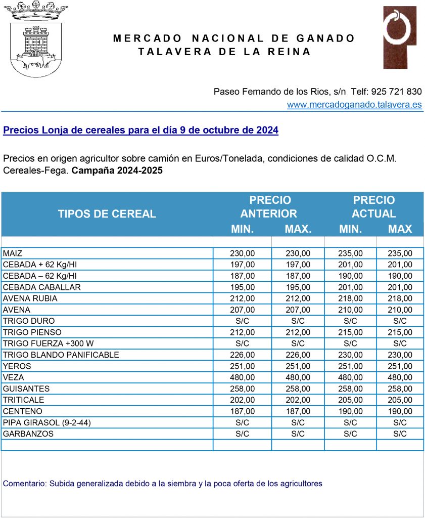 Mercado Nacional de Ganado de Talavera de la Reina. Cereales. 9-octubre-2024