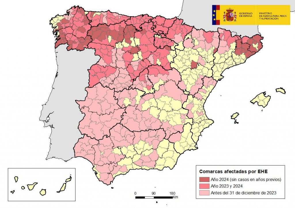 Desde el Ministerio de Agricultura, Pesca y Agricultura recuerdan que la EHE no afecta en ningún caso al ser humano, tratándose de una Enfermedad de Declaración Obligatoria (EDO) recogida en el Real Decreto 779/2023, de 20 de junio, por el que se establece la lista de las enfermedades de los animales de declaración obligatoria y se regula su notificación.