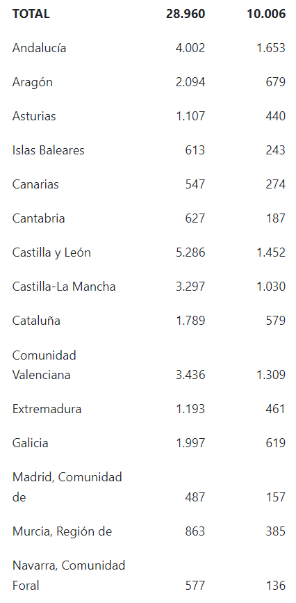 El pasado agosto se produjeron 28.960 operaciones de transmisiones de fincas rústicas, en las que, además de las realizadas a través de compraventa se engloban las herencias (11.957), donaciones (1.014), permutas (166) y «otros» tipos de transmisiones (5.817).