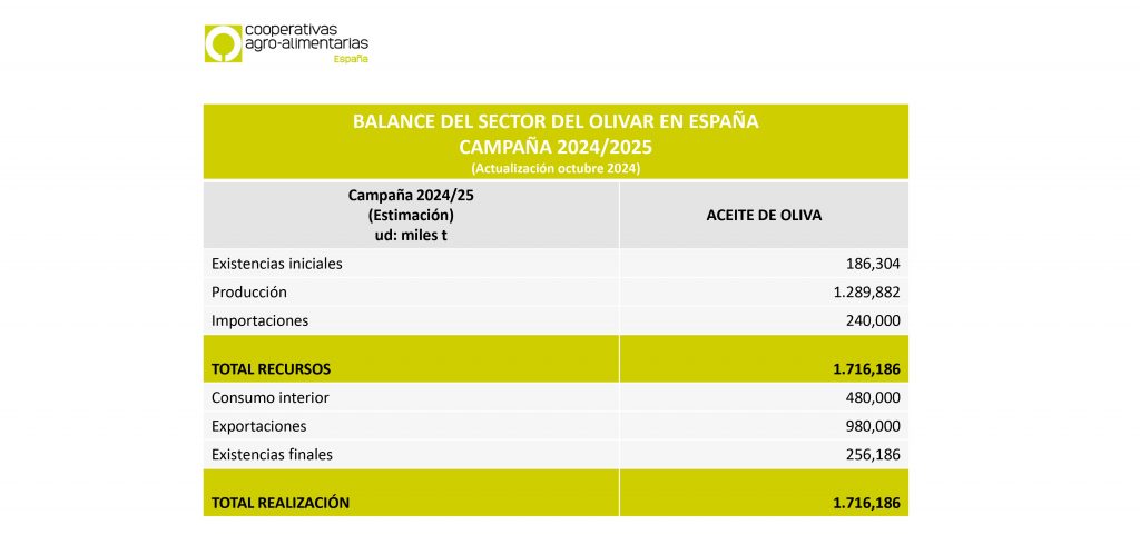 Cooperativas Agro-alimentarias de España espera una campaña 2024/25 en la que la disponibilidad de aceite de oliva no alcanzará a cubrir la demanda.