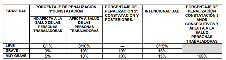 El documento recoge los requisitos de las normas en materia laboral y de seguridad y salud de las personas trabajadoras, así como los criterios mínimos para la aplicación armonizada de las penalizaciones, y la posible calificación del nivel de penalización, según la gravedad, alcance, persistencia, reiteración e intencionalidad.