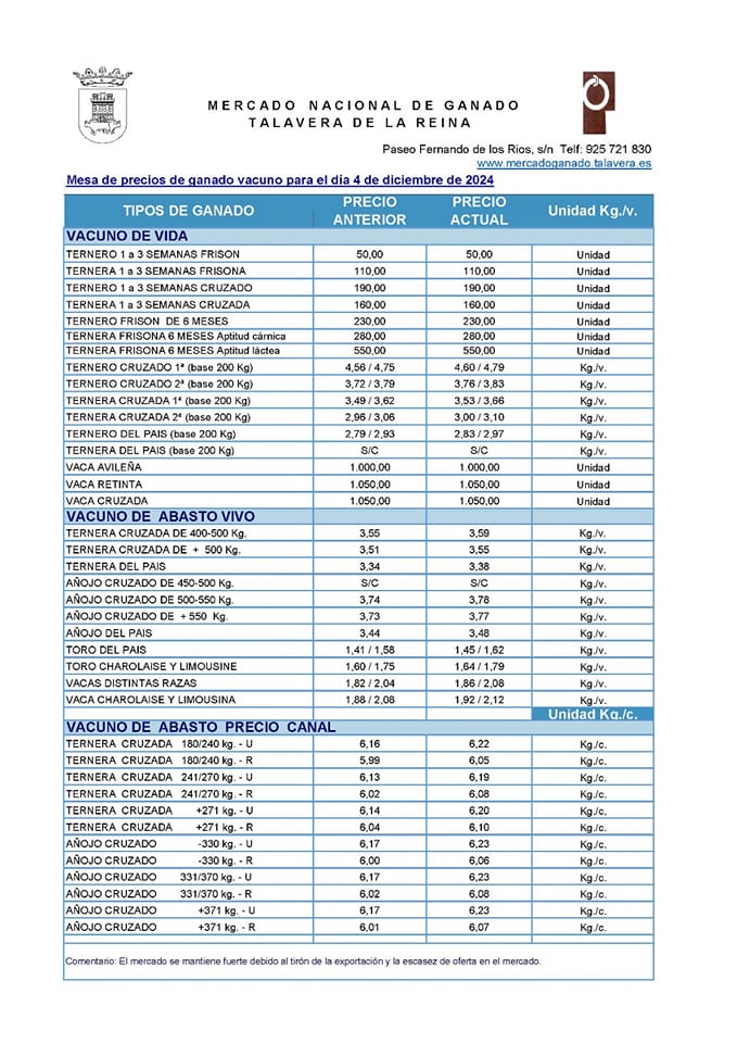 Mercado Nacional de Ganado. Vacuno. 4-diciembre-2024