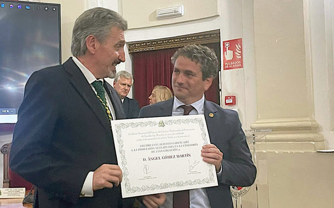 El Consejo de Colegios Profesionales de Veterinarios de Castilla-La Mancha ha concedido el Premio «Luis Alberto García Alía» a la Profesión Veterinaria en la categoría de Investigación a Ángel Gómez Martín, profesor de la Facultad de Veterinaria de la Universidad CEU Cardenal Herrera (CEU UCH), por su labor científica en el ámbito de la ganadería ovina y caprina. Los premios se entregaron a finales de noviembre en el Paraninfo de Cardenal Lorenzana, en Toledo.